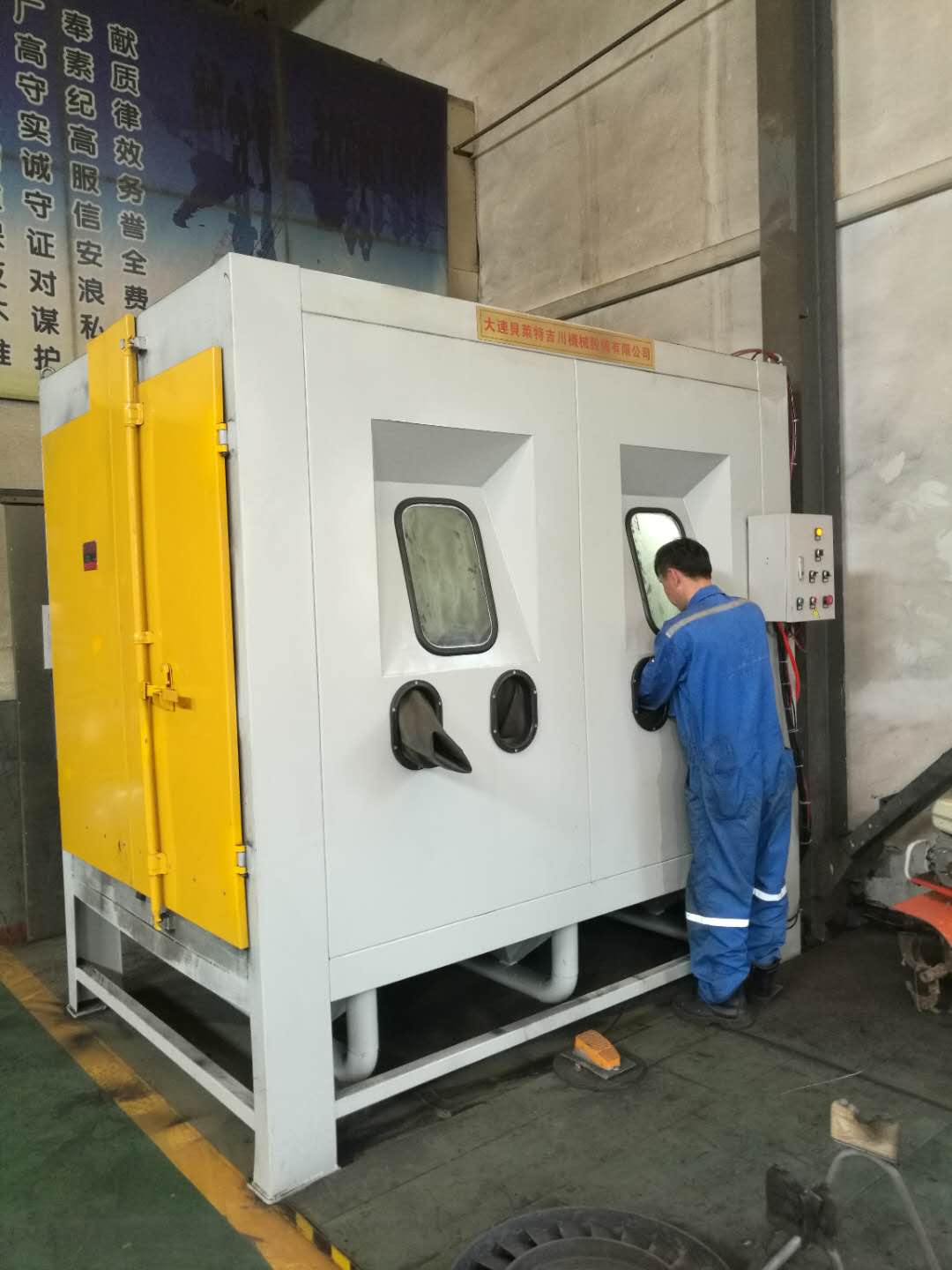 為某船用渦輪增壓器定制渦輪噴砂機順利完成驗收工作